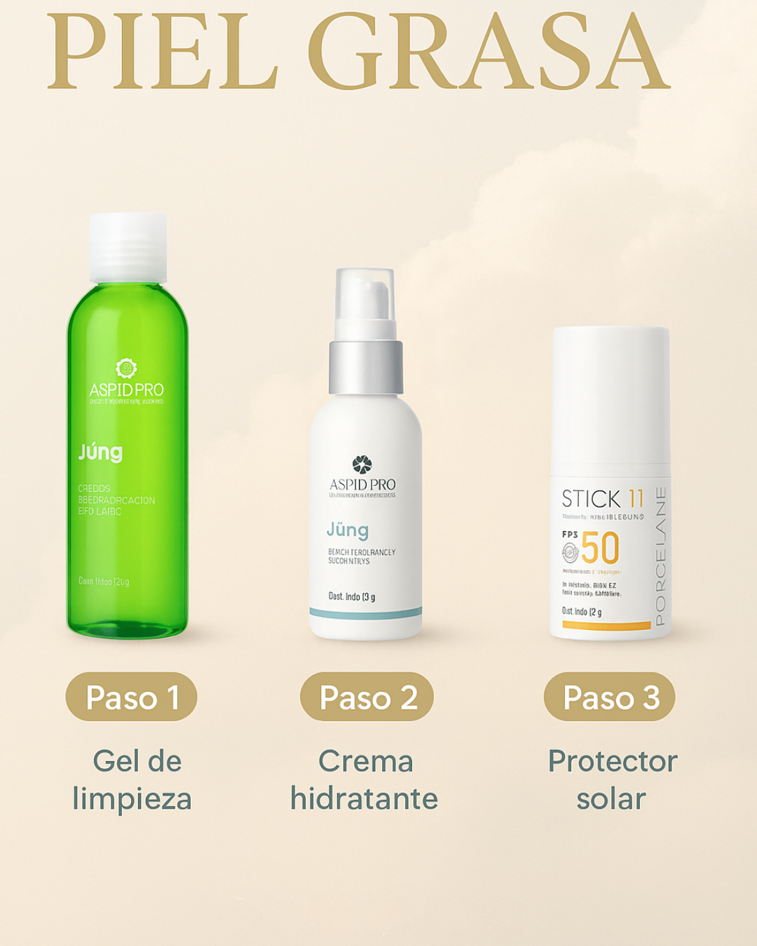 - Protector solar: Aplica un protector solar específico para pieles grasas con una fórmula libre de aceite, para evitar que obstruyan los poros.