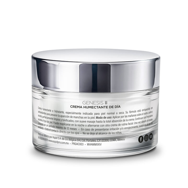 Crema Génesis II, es una fórmula que incorpora enzimas específicas llamadas Nucleasas, como activo que favorece las funciones biológicas de la piel y ayuda a conseguir beneficios que refuerzan activamente la barrera de protección de la piel, al tiempo que la hidrata y unifica su tono.