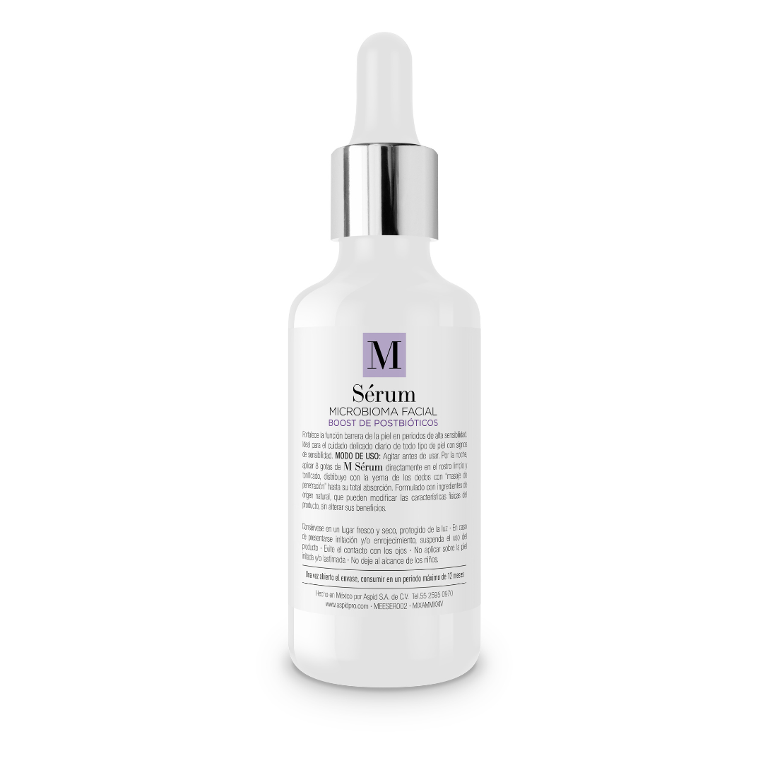 Por el día, aplicar 8 gotas de Sérum M directamente en el rostro limpio y tonificado, distribuye con la yema de los dedos con "masaje de penetración" o masaje ascendente total hasta su total absorción.