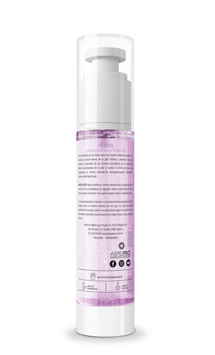 NEBBIA es una loción poliácida con efecto hidro-exfoliante suave y refrescante, diseñada para revelar una piel más saludable y radiante. Formulado a base de Gluconolactona y Ácido lactobiónico, hidroxiácidos de nueva generación con propiedades hidratantes y antioxidantes, facilitan el recambio celular fisiológico del estrato córneo y garantizan una renovación óptima que afina la textura de la piel. Ayuda a conseguir un brillo único, con aspecto fresco y menos graso.