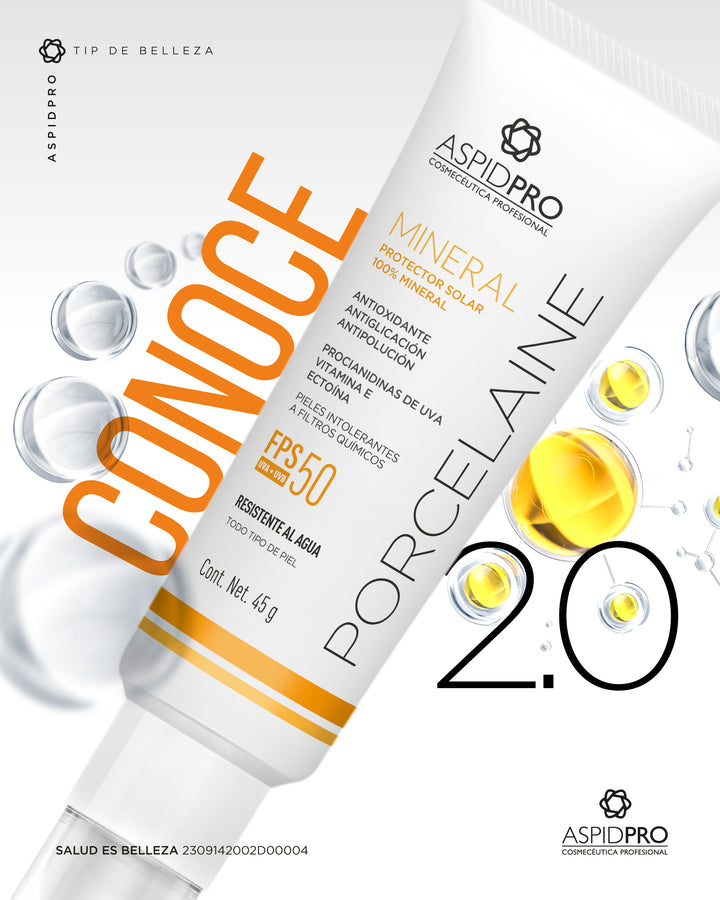 PORCELAINE Mineral es una fórmula especialmente desarrollada para pieles intolerantes a los filtros solares químicos, por su composición exclusiva de filtros 100% minerales (ZnO y TiO2) que garantizan una protección alta (UVB/UVA); y una Tecnología Blue shield que aumenta la protección frente a los daños causados por la luz azul.