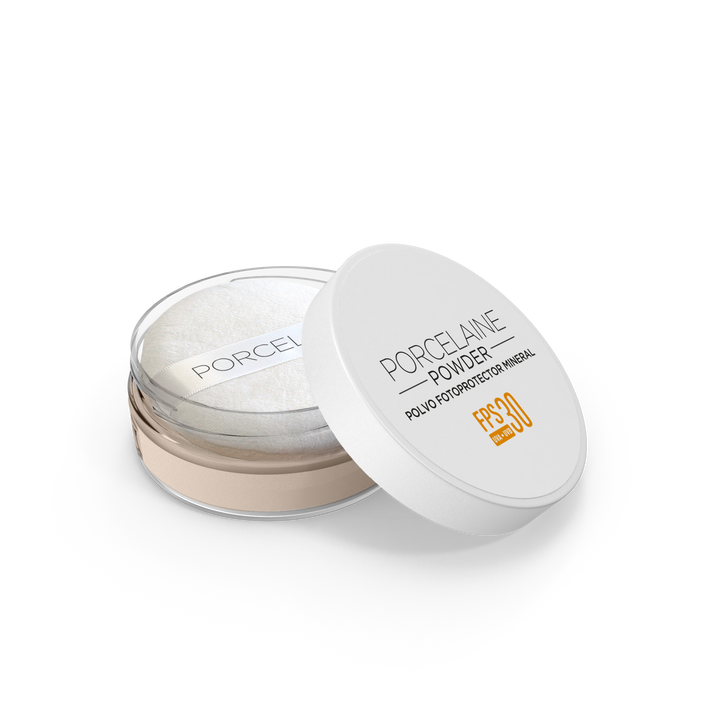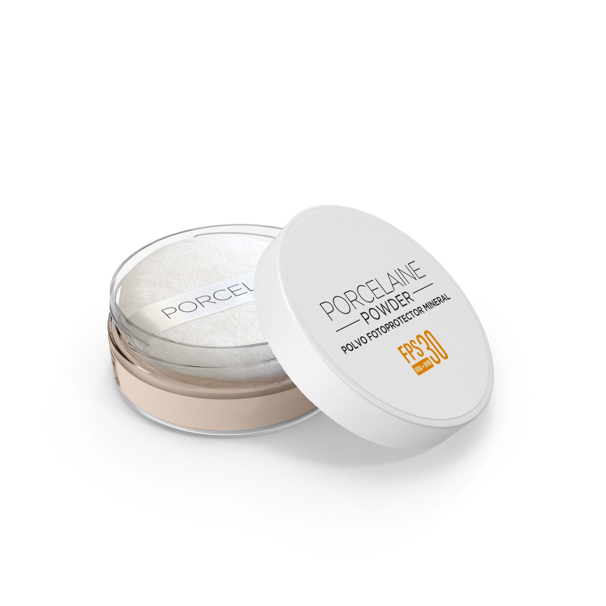 Porcelaine Powder es un fotoprotector 100% mineral en polvo, desarrollada para pieles intolerantes a los filtros solares químicos.