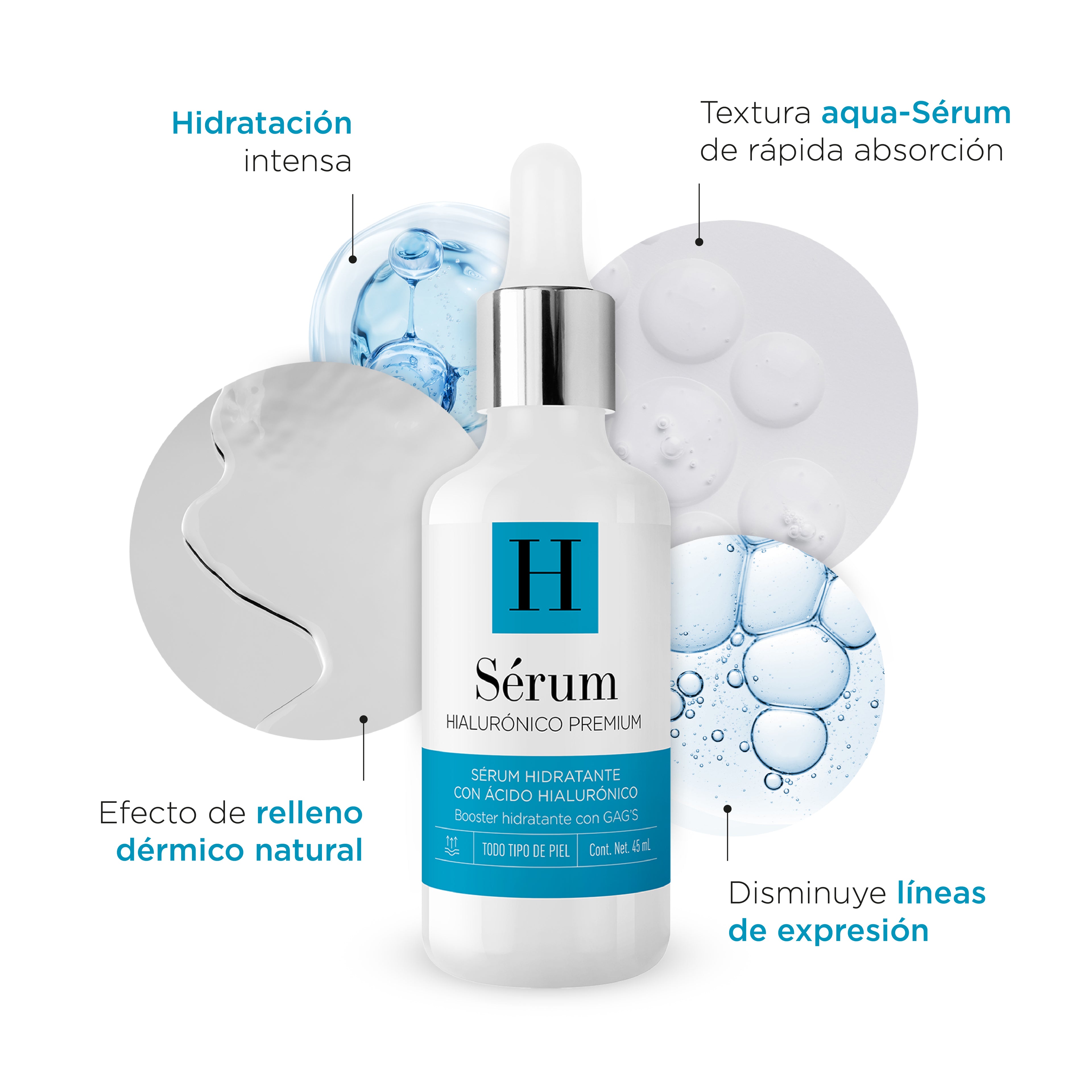 El concepto “Premium” del H Sérum se centra en aportar el máximo poder hidratante e intensivo para elevar el nivel de tu cuidado facial con la combinación de ácido hialurónico de doble acción y moléculas hidratantes que favorecen el estado de hidratación natural desde el interior de la piel.